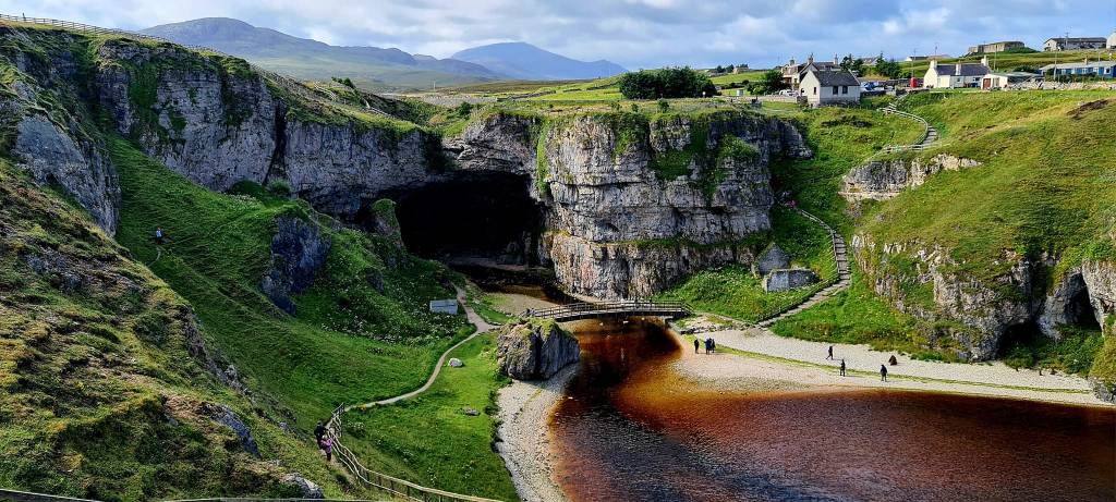 Things got even better the next day, as we headed along the coast to Smoo Cave. The sun shone as we parked at the beauty spot and climbed down the side of the bay. At beach level, we turned the corner and saw the UK’s largest coastal cave, staggering 50 feet high against limestone rocks.