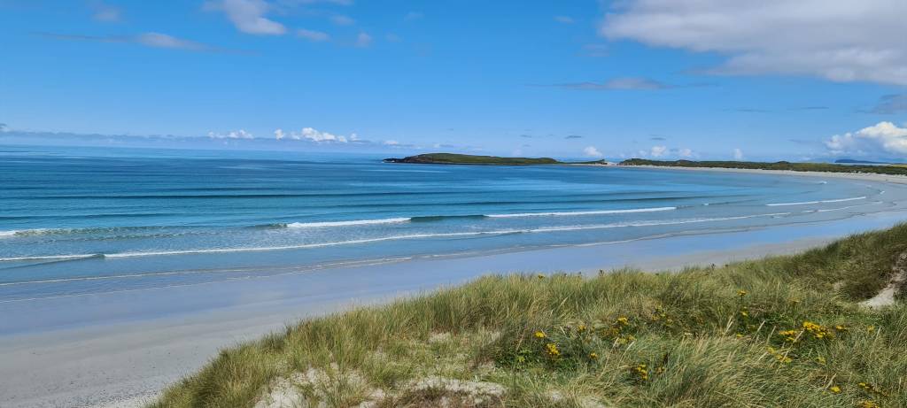 Bravely facing the choppy sea, I went in for a dip. But this was no Achmelvich Bay, with nothing but open ocean there was no hiding from the cold, and with grey skies looming, I got as far as my knees before retreating back to the beach. Despite my misgivings, the sun rallied again, and I dried off on my camping chair, soaking up our surroundings.
