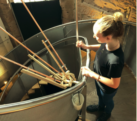 The work was then made interactive by entwining The Lighthouse staircase in a giant glockenspiel construction, the angles of which mimicked patterns of Charles Rennie Mackintosh design, allowing visitors to create their own sounds.
